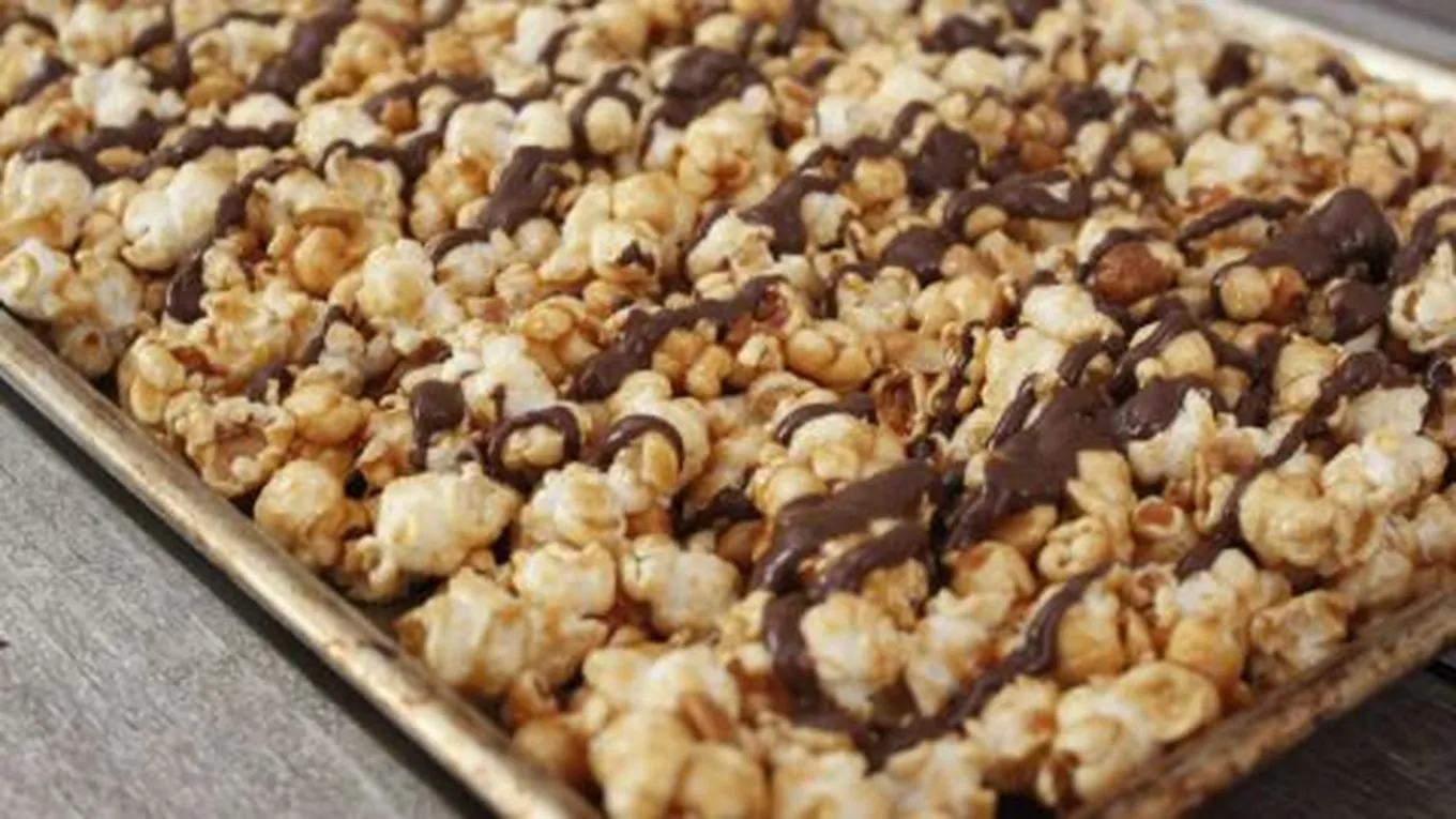 - نسكب الكراميل السائل فوق البوشار، ونحرّك حتّى يمتزج تماماً.