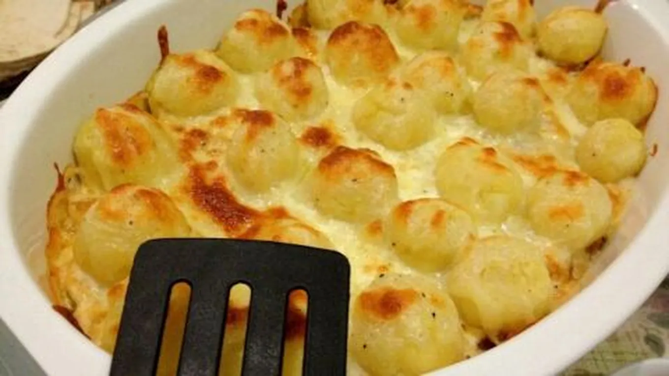 - وضع خليط الجبن فوق كرات البطاطس، مع الانتباه إلى تغطية كامل الكرات به، ثمّ توزيع جبن الموزاريلا على الوجه.