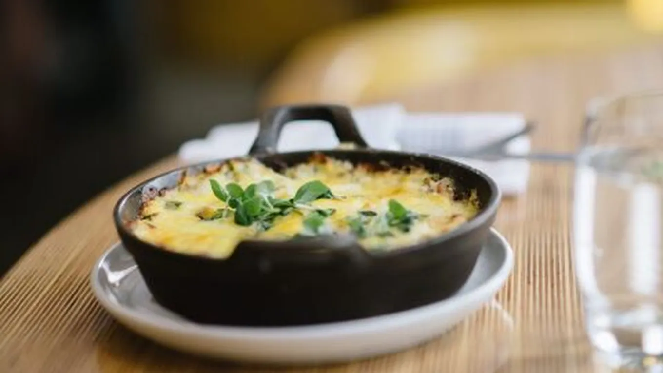 - توزيع خليط البيض فوق الدجاج والخضروات، ثمّ إضافة الجبن الكريمي، البقدونس وجبن الشيدر.