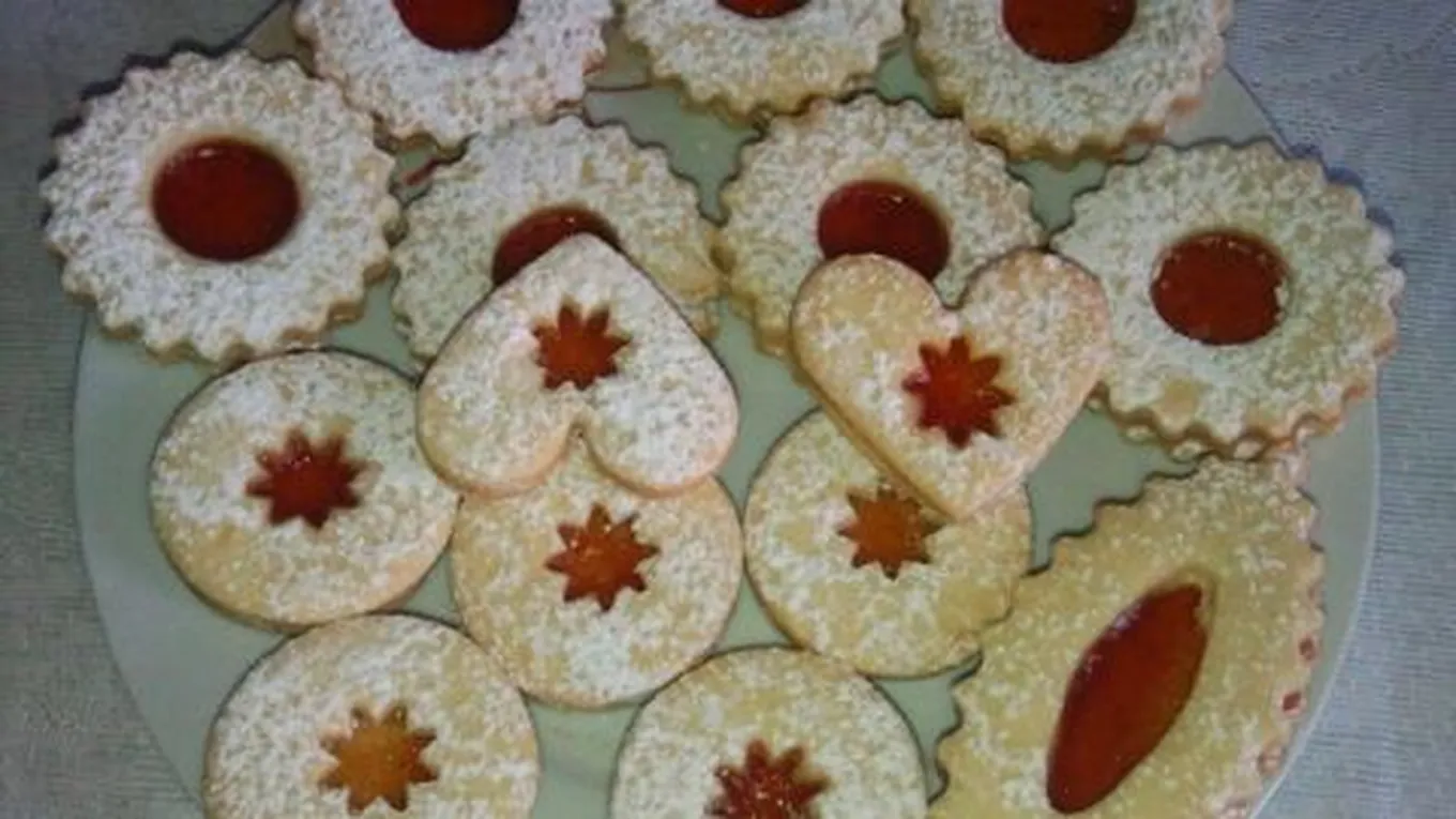 - نقوم برش القطع المثقوبة بالسكر الناعم، ثم نقوم بدهن القطع غير المثقوبة بالمربى، ونلصق القطع المثقوبة بالقطع غير المثقوبة، فيظهر المربى من الثقب ويعطي منظراً أجمل.