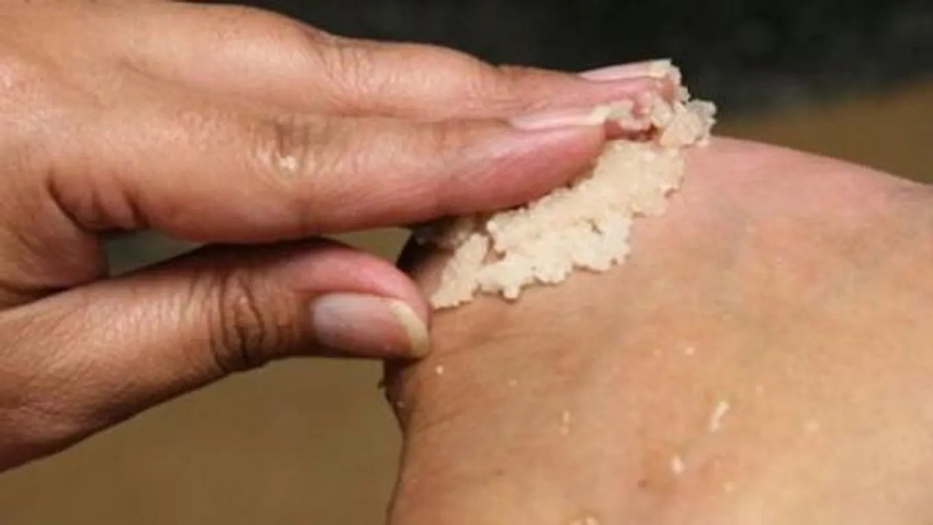 - يغمس القدمين في خليط الماء الممزوج بالعسل، ويفرك الجلد برفق.