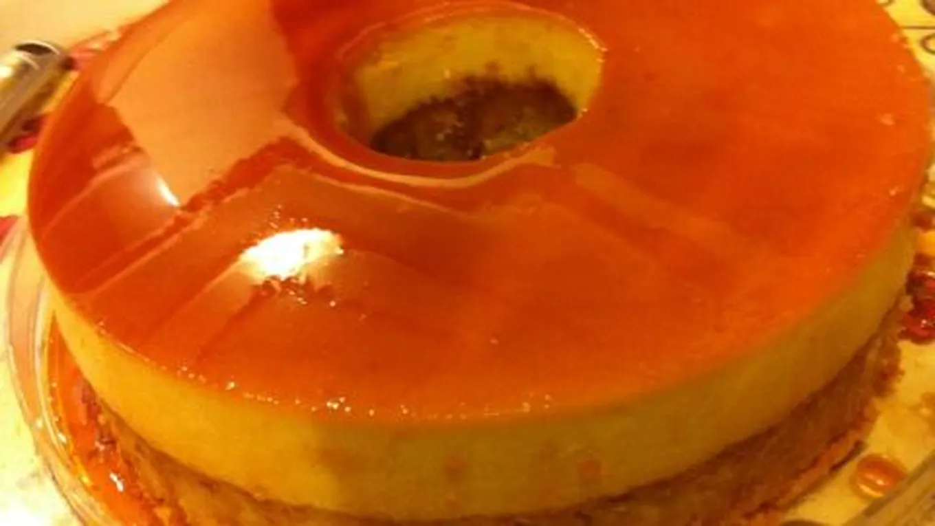 - نسكب في قالبَ الكيك، أو الصينية الكراميل كطبقة أولى، وبعدها طبقة الكريم كراميل، ثمّ مزيج الكيك.