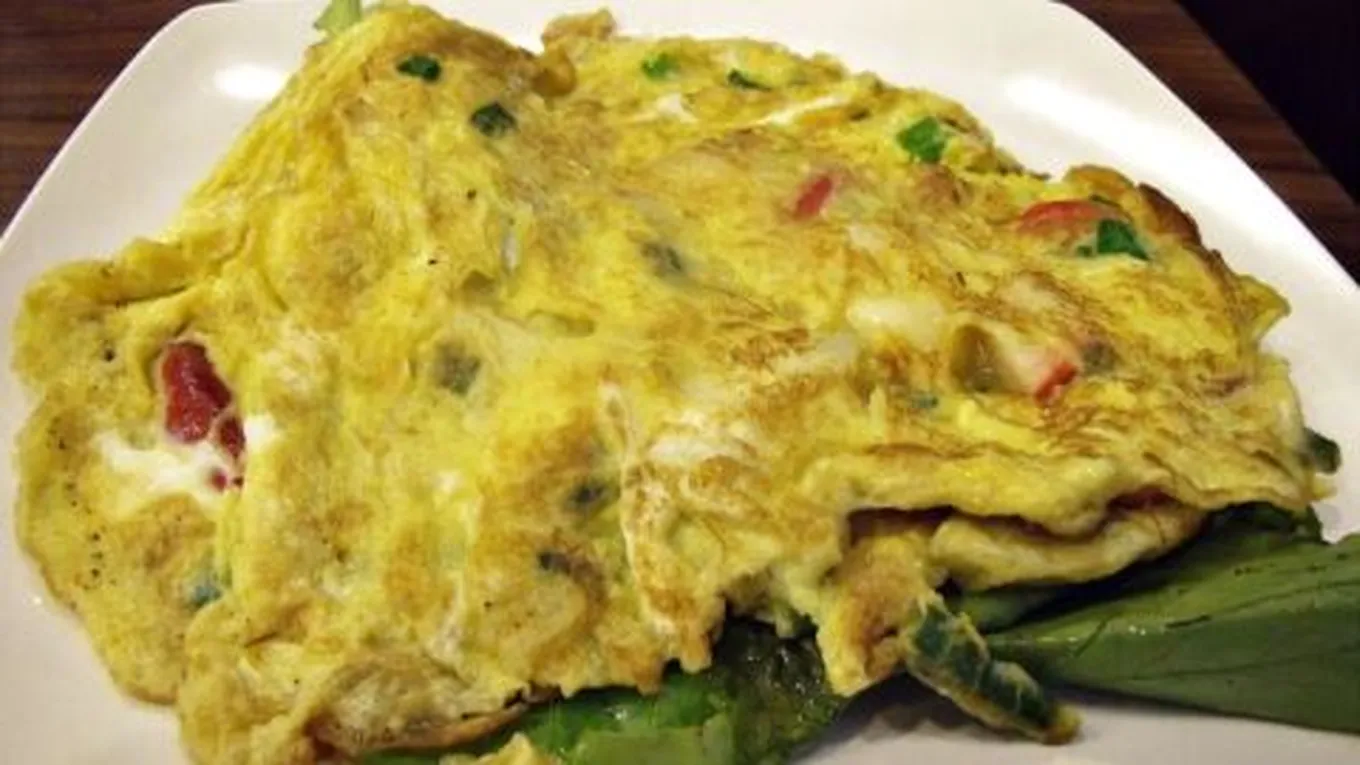 - صب البيض على شكل قرص، وتركه يصبح ذهبي القاع، وقلبه على الجانب الآخر، وتوزيع الحشو فوقه، وثني البيض إلى نصفين، وتركه لبضع ثوانٍ حتى يسخن الحشو.