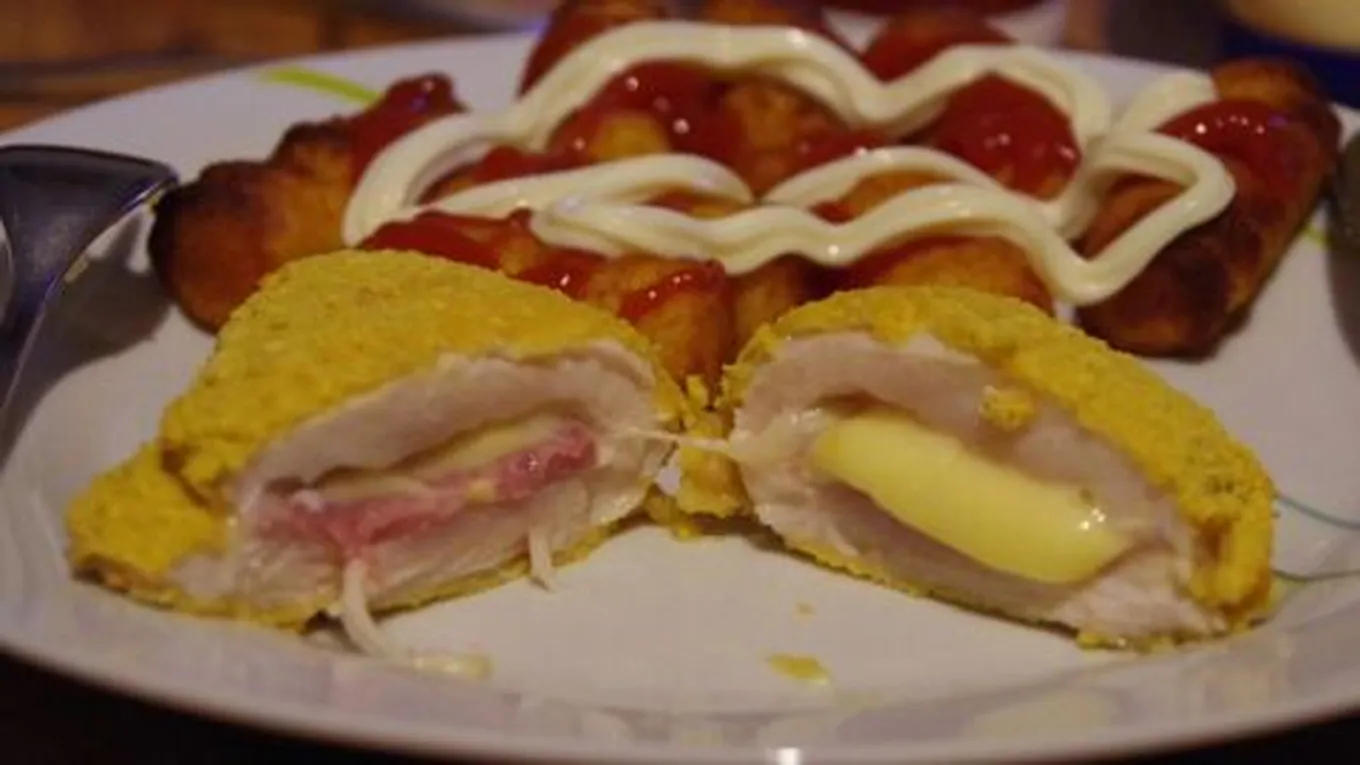 - إخراج الكوردن بلو من المطبخ وتغطية الوجه بقطعة من الجبن ثمّ وضعها بالفرن مرة ثانية لمدة خمس دقائق إلى أن يذوب الجبن.