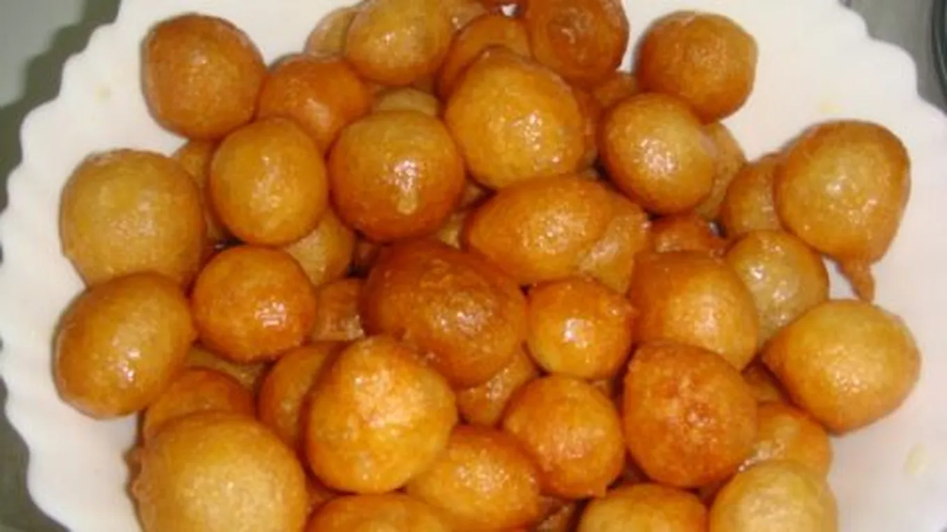 - نُشكل العجينة إلى كرات صغيرة ونُسخن الزيت في قدر على النار، ثمّ نقلي اللقيمات به ونغمسها في القطر.