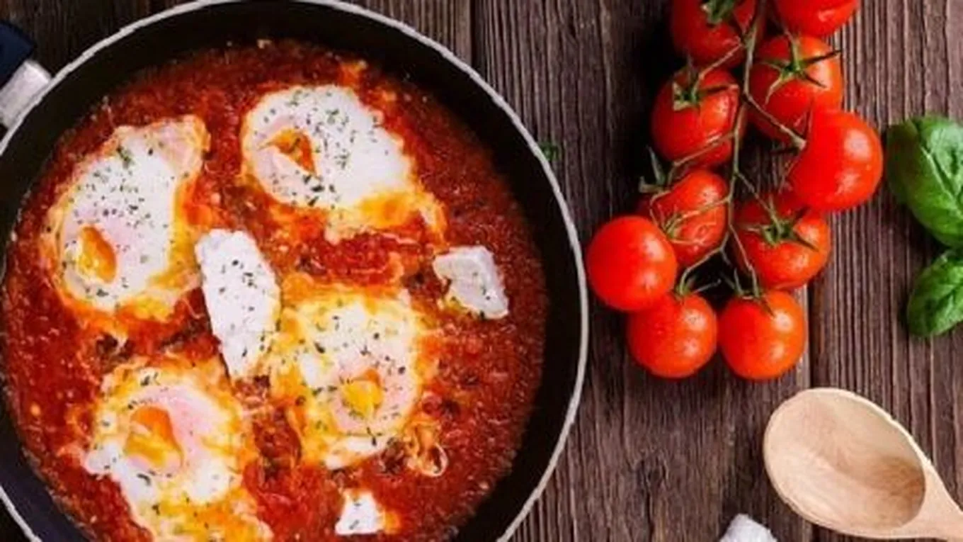 - تشكيل أربعة ثقوب صغيرة باستخدام ملعقة في الفلفل المغلي لعقد البيض واحداً تلو الآخر، ثمّ صدع البيض في وعاء صغير وسكبه على قدر الطماطم، والفلفل ثمّ يُغطّى ويُطهى على نار خفيفة لمدّة عشر دقائق أخرى أو لينضج البيض.