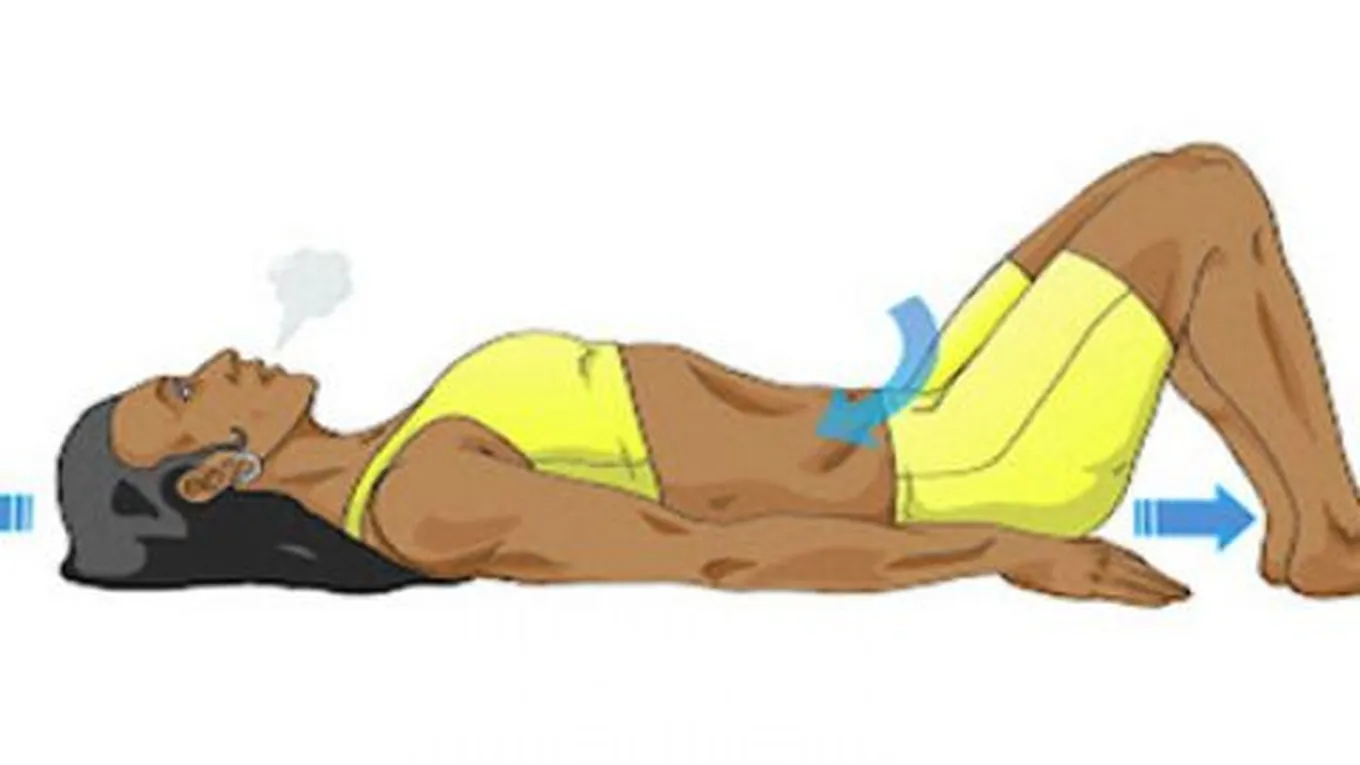 - تمرين تحريك الذراع بقوة: يتم التمرين بالاستلقاء على الظهر ومن ثم ثني الساقين على بعضهما، وبعد ذلك يتم رفع الرأس والذراعين للأعلى وإنزالهما للأسفل بحركات سريعة، سيُلاحظ أثناء التمرين بأن عضلات البطن تحرّكت، يُكرر التمرين 20 مرة يومياً.