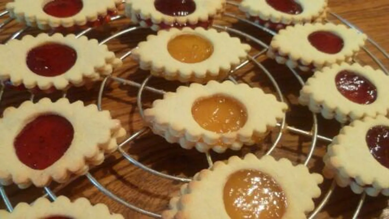 - بعد أن تبرد قطع البسكويت، نُلصق كل قطعتين بالقليل من المربى، ونزيّنها بالشوكولاتة الذائبة.