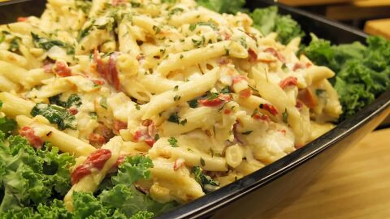 - غسل المعكرونة بالماء البارد وتركها جانباً إلي أن تبرد.