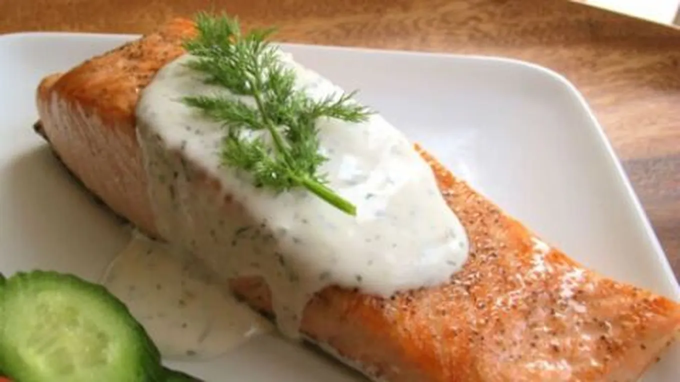 فيليه سمك السلمون المقلي مع صوص الليمون