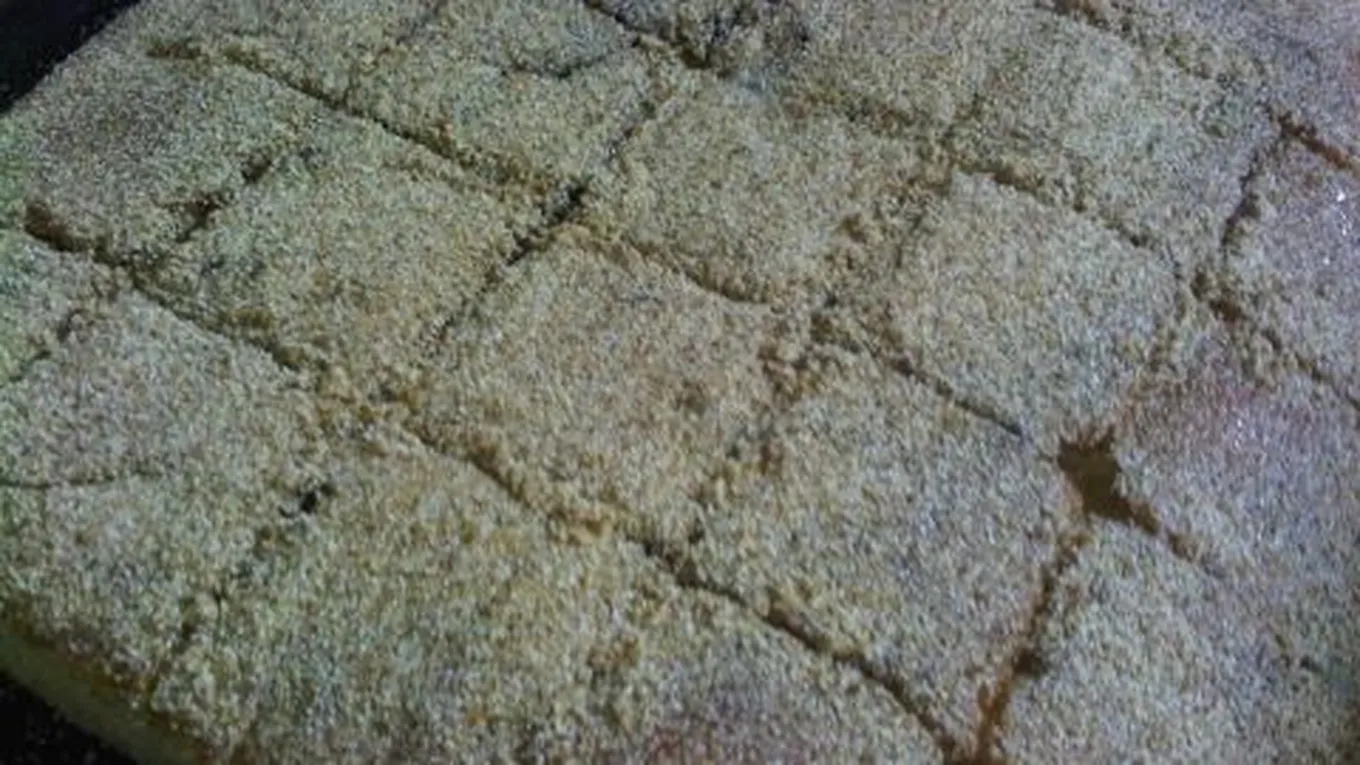 - أخرجي الكيكة من الفرن بعد التأكد من نضجها، ثمّ ادهني وجهها بالحليب المركّز، ثمّ انثري السميد المحمّص على وجهها، وقدّميها.