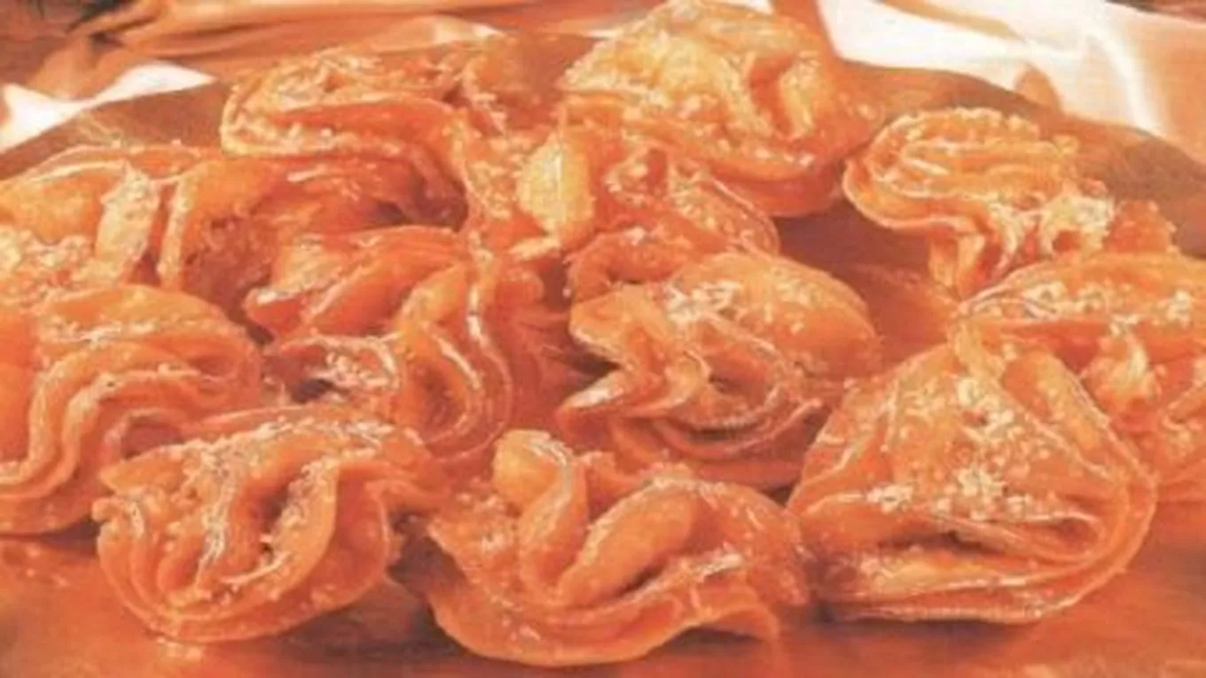 - ضع حلوى الورد في العسل المخفف بماء الزهر لبضعة ثوانٍ، ثمّ أخرجها وضعها في المصفاة.