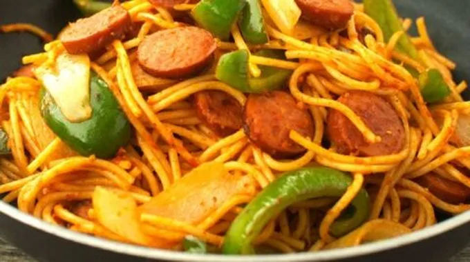 - إضافة النقانق، والأوريغانو والتحريك لمدّة خمس دقائق أو حتّى تنضج المكوّنات.