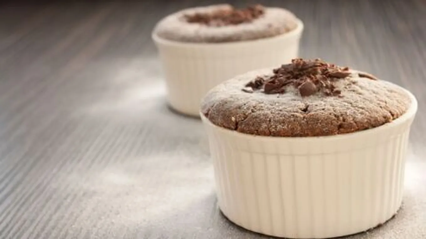 - نسكب المزيج بشكلٍ متساوٍ على قوالب السوفليه، وندخلها إلى الفرن لمدة ثلث ساعة.