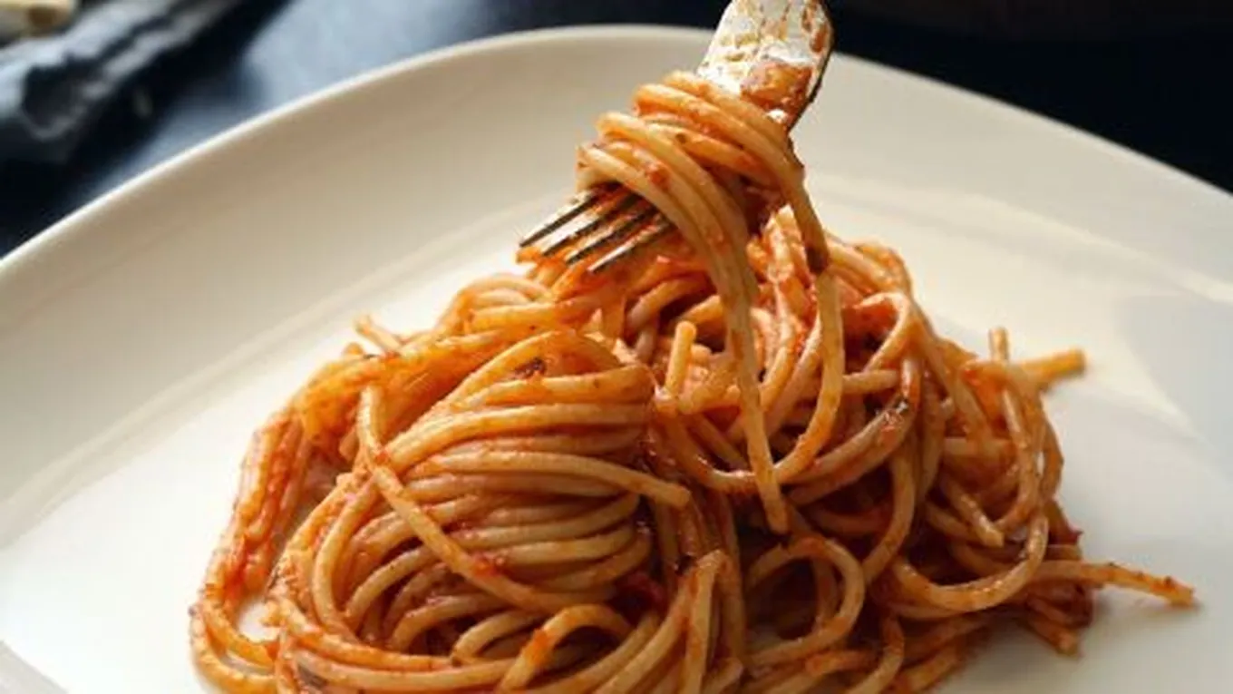 سباغيتي بصلصة الطماطم مدة الطبخ 20 دقيقة تكفي لِ 4 أشخاصالمكوناتخمسمئة جرام من معكرونة السباغيتي.حبة متوسطة من الفلفل الأحمر الحلو المقطّع.نصف ملعقة صغيرة من