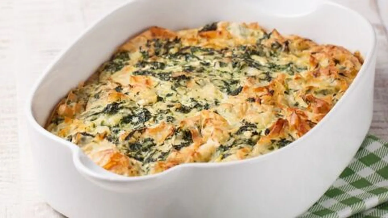 فطيرة السبانخ مدة التحضير 20 دقيقة مدة الطهي 40 دقيقة تكفي لـ 8 أشخاصالمكوناتنصف كوب وملعقتان كبيرتان من زيت الزيتون.أربع حبات متوسطة من البصل المقطع.أربعة