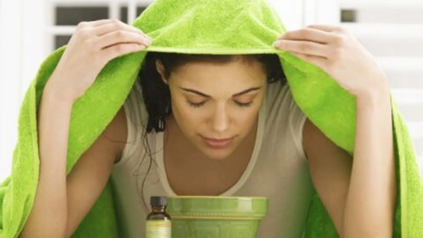 - وضع المنشفة فوق الرّأس، ووضع الوجه فوق البخار المتصاعد بالانحناء فوقه مدّة 10 دقائق تقريباً.