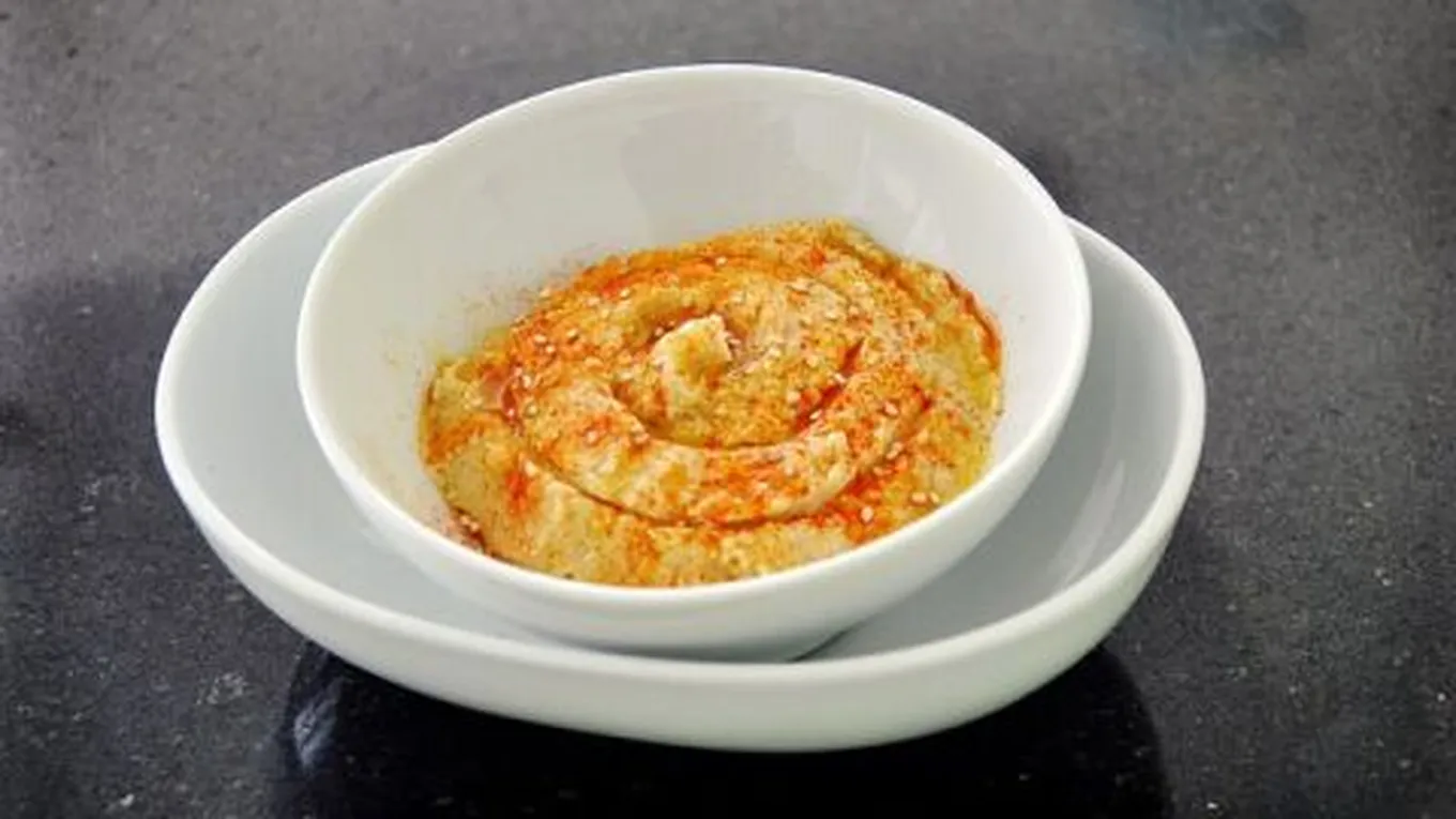 - هرس الحمص مع الثلج حتى الحصول عليه ناعماً وكريمياً، ثمّ إضافة عصير الليمون والطحينة وتتبيلها بالملح، ثمّ إضافة زيت الزيتون واندماج المكونات مع بعضها البعض حتى مجانستها.