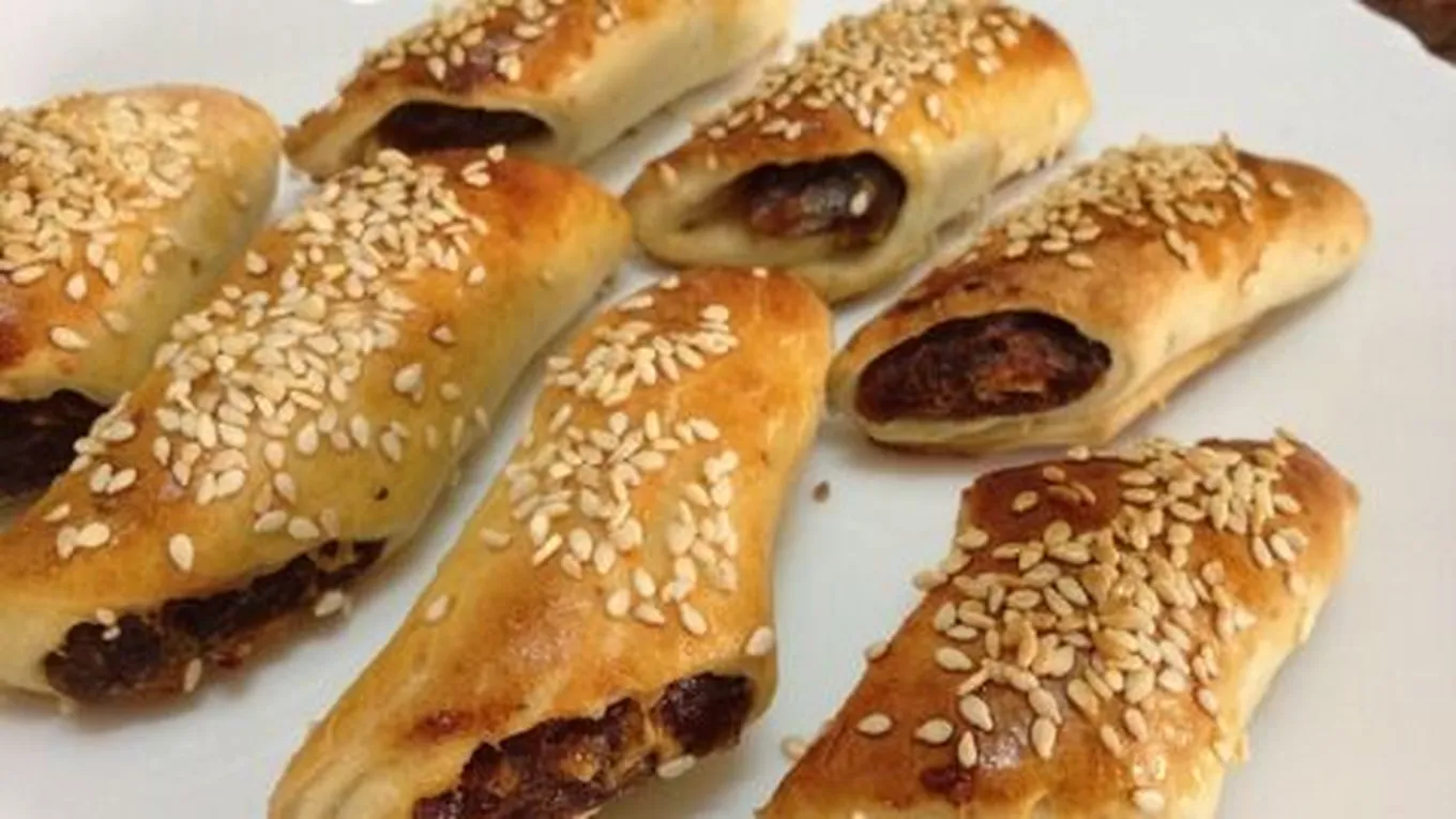 - عمل حفرة في كلّ عود عجين، ثمّ وضع بداخلها كمية قليلة من التمر.