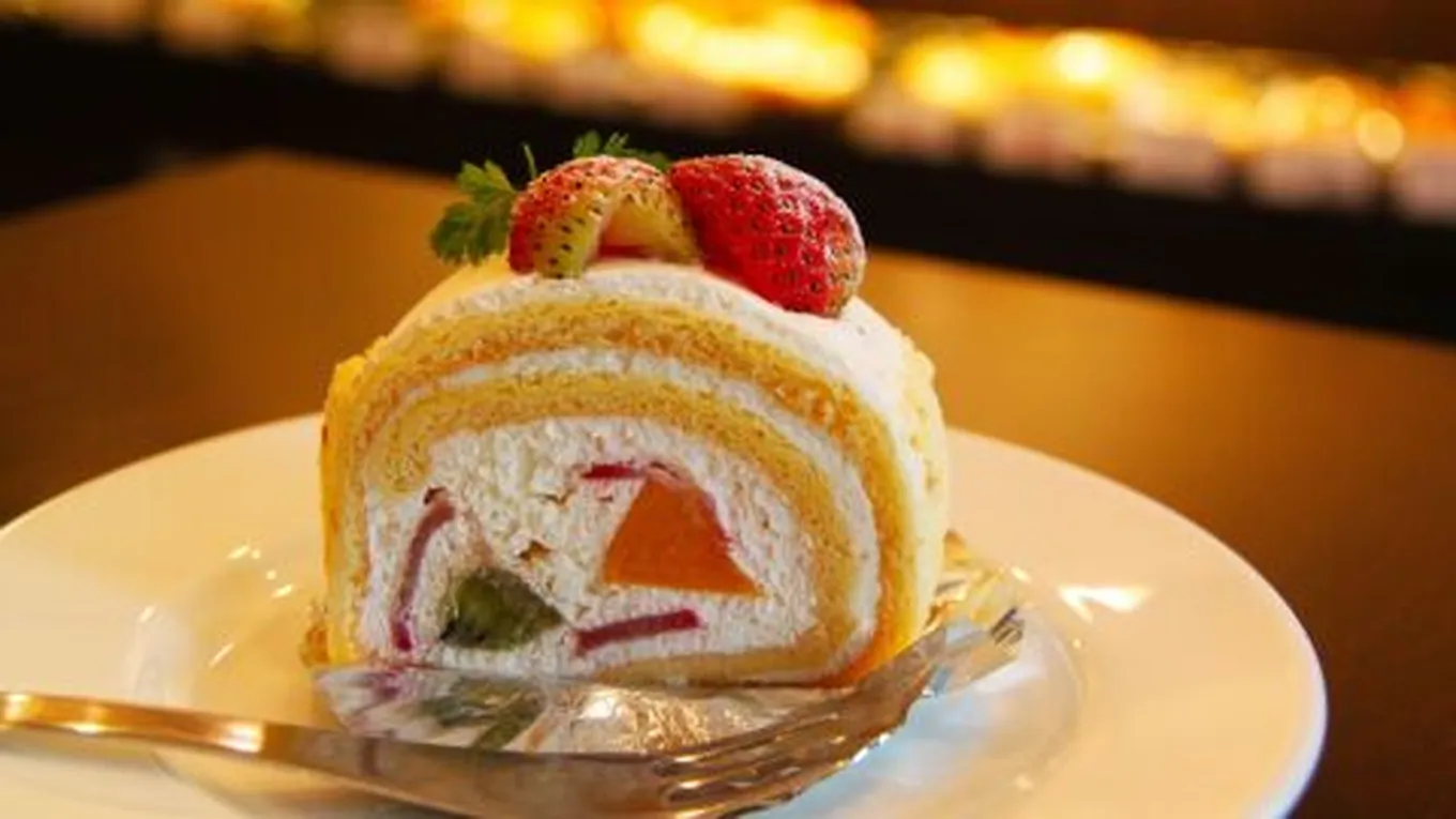 - تقطيع الكيك إلى شرائح متساوية.