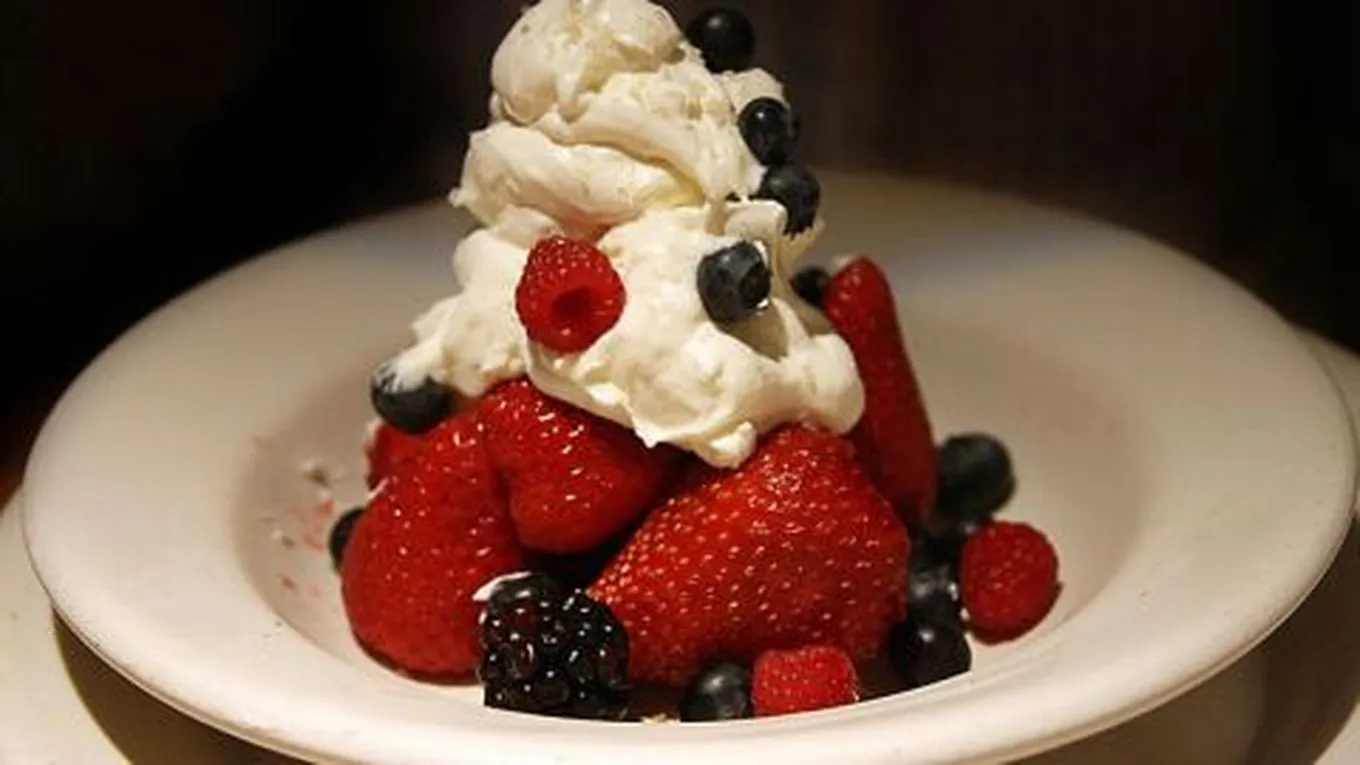 - نقطّع الفواكه في أطباق التقديم، ثم نسكب الجلي فوق الفواكه.