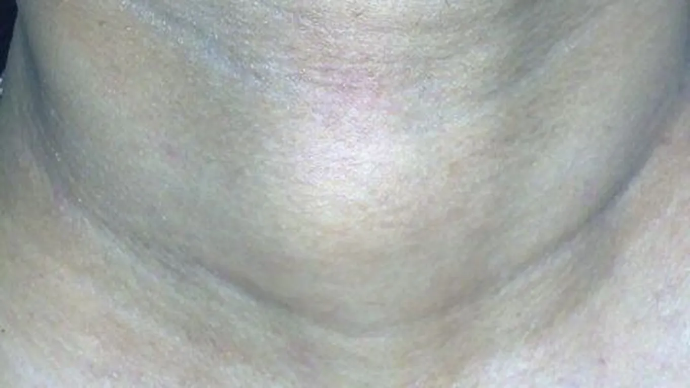 - ظهور ورم في منطقة الرقبة يُمكن مشاهدته من خلال الجلد.