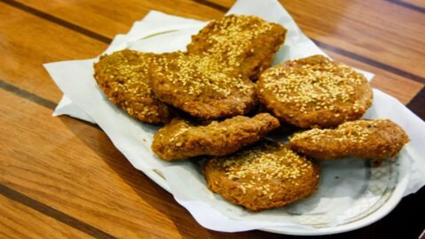 - يقلب الخليط ويشكّل على صورة أقراص، ويخلط البقسماط مع السمسم ويوضع على وجه هذه الأقراص.