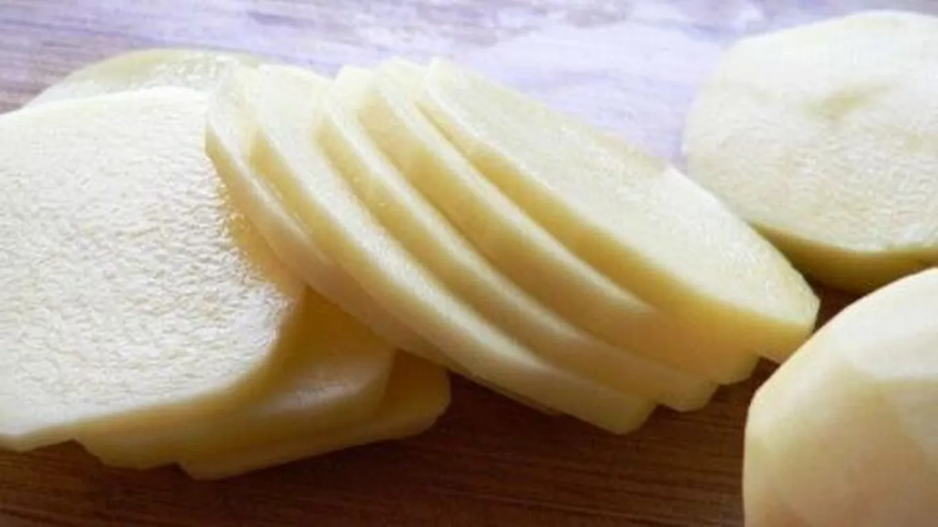 - نشرّح ثمرة من البطاطس إلى شرائح سميكة.