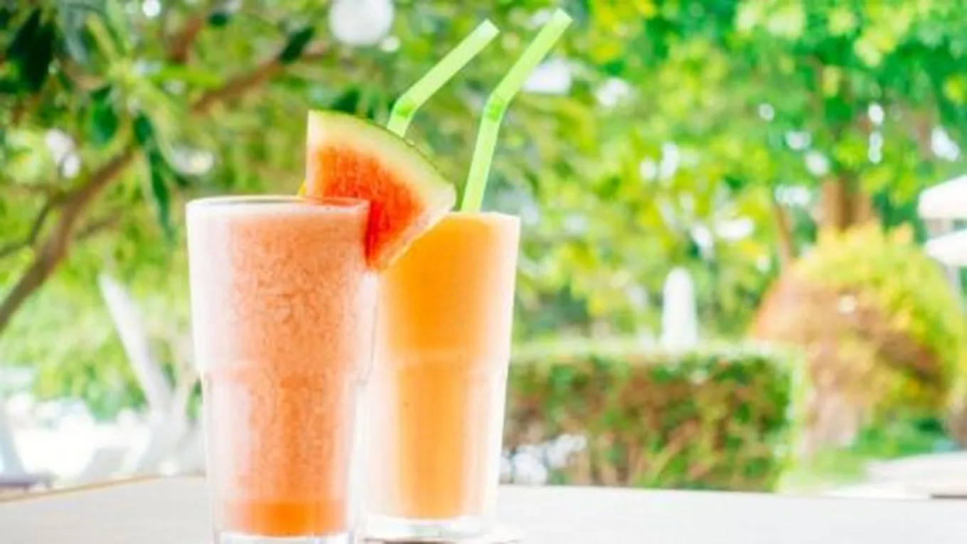 - سكب عصير البطيخ في الكاسات على عصير الشمام وتقديم الكوكتيل مباشرة.