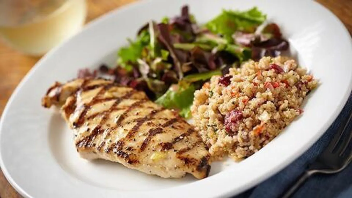 - أرز بني، ومصدر للبروتين منخفض الدهون، وخضروات مشوية.