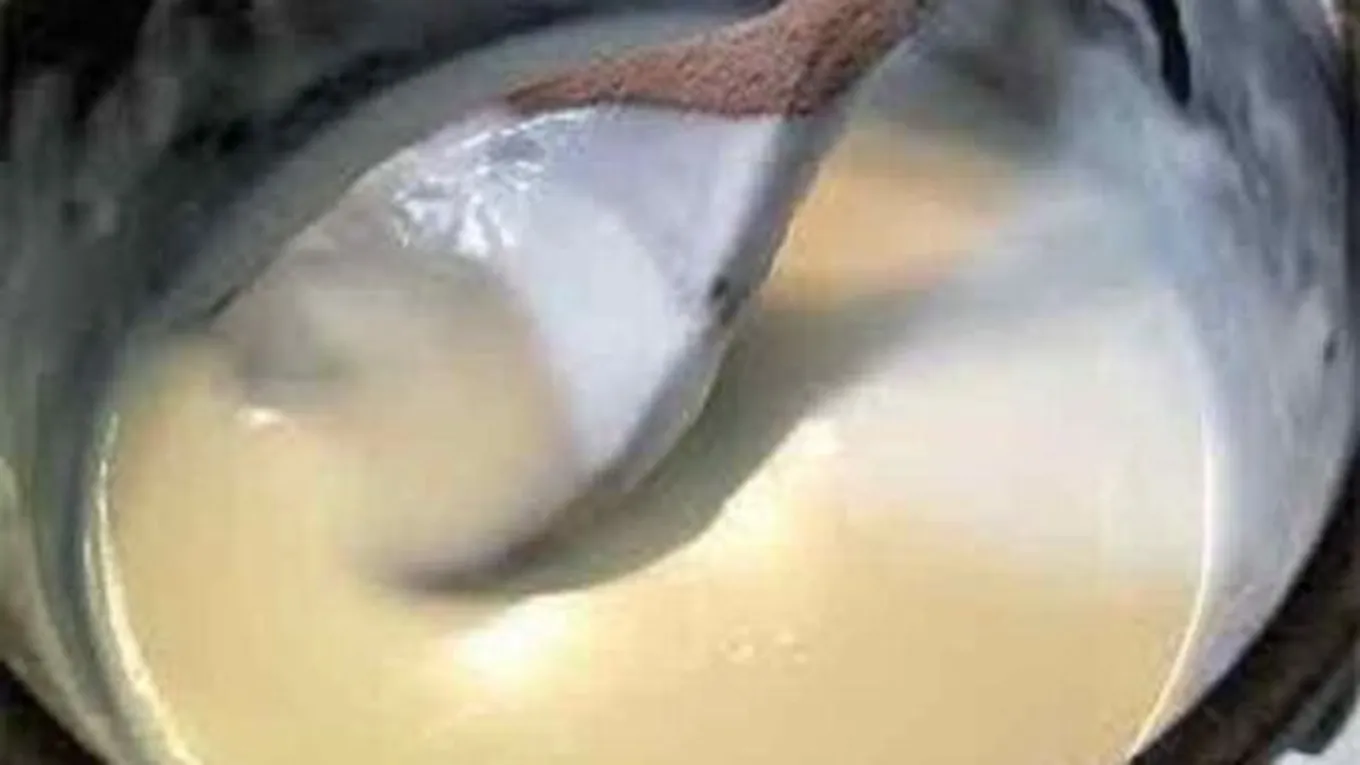 - نسكب الخليط في قدر ذي سمك مرتفع، ونضعه على نار متوسطة، ونستمرّ بالتحريك حتى تتجانس المكوّنات بشكل تام، ومن الجدير ذكره أنّه لا يجب أن تتشكّل التكتلات، ولكن في حال تشكّلت نُصفّي الخليط بواسطة مصفاة ناعمة.