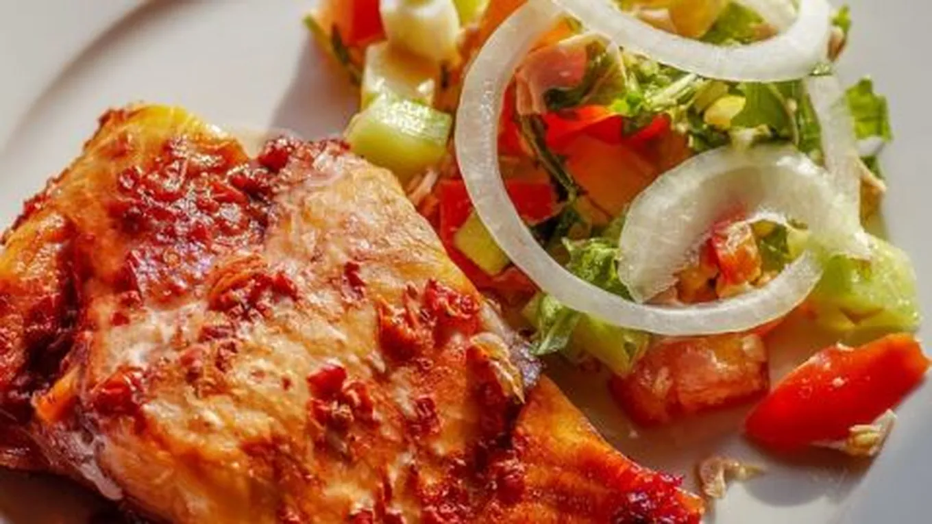 سلمون مشوي بصوص الديجون والعسل