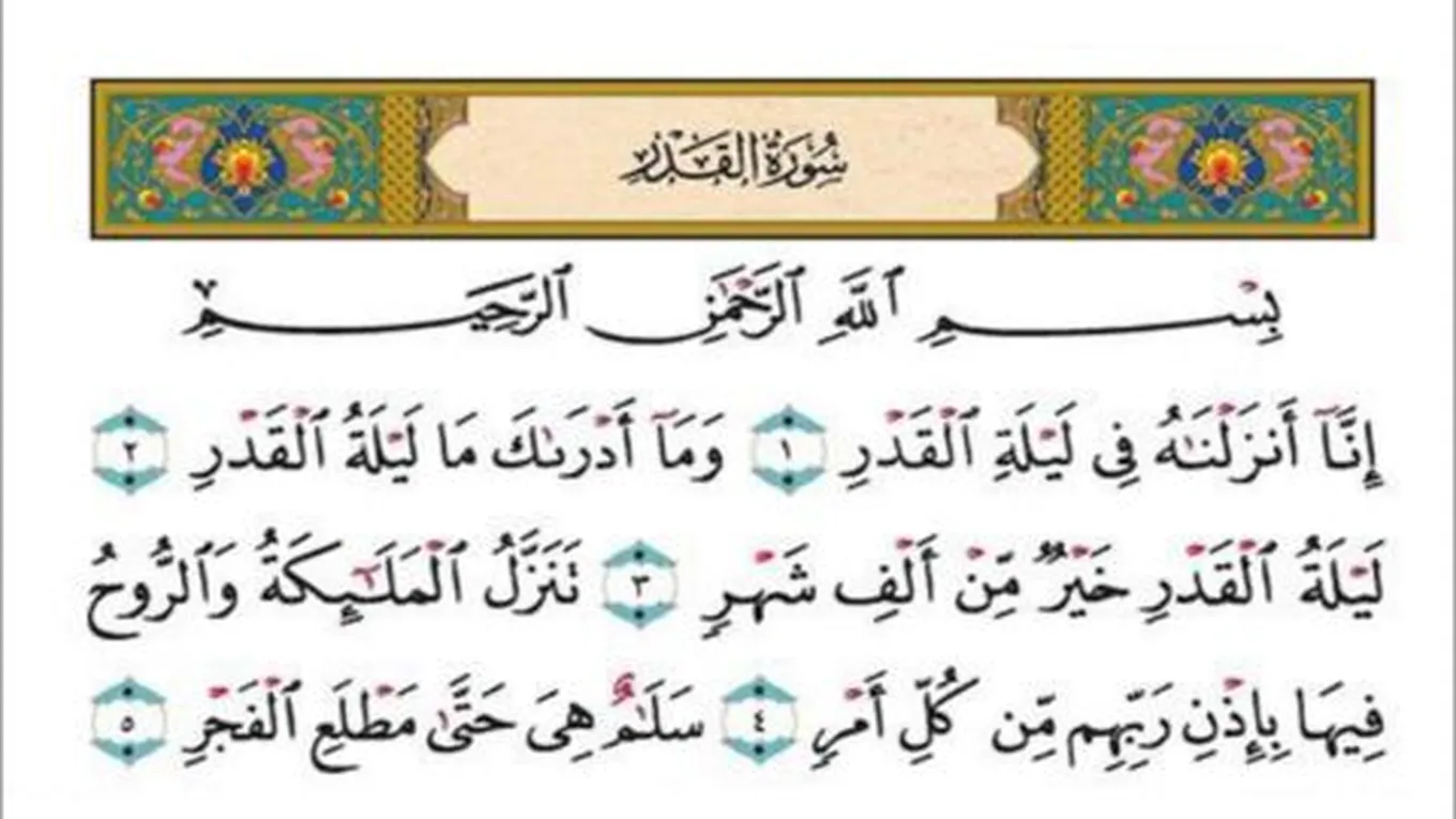 قال تعالى: (إِنَّا أَنْزَلْنَاهُ فِي لَيْلَةِ الْقَدْرِ، وَمَا أَدْرَاكَ مَا لَيْلَة الْقَدْرِ، لَيْلَةُ الْقَدْرِ خَيْرٌ مِنْ أَلْفِ شَهْرٍ، تَنَزَّلُ الْمَلَائِكَةُ وَالرُّوحُ فِيهَا بِإِذْنِ رَبِّهِمْ مِنْ كُلِّ أَمْرٍ، سَلَامٌ هِيَ حَتَّى مَطْلَعِ الْفَجْرِ).