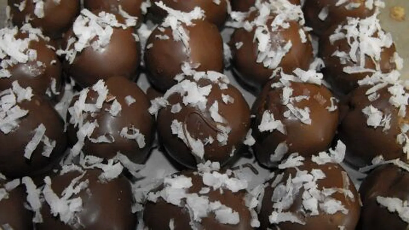 - نشكل العجينة إلى كريات متوسطة الحجم ثم ندحرجها في جوز الهند.