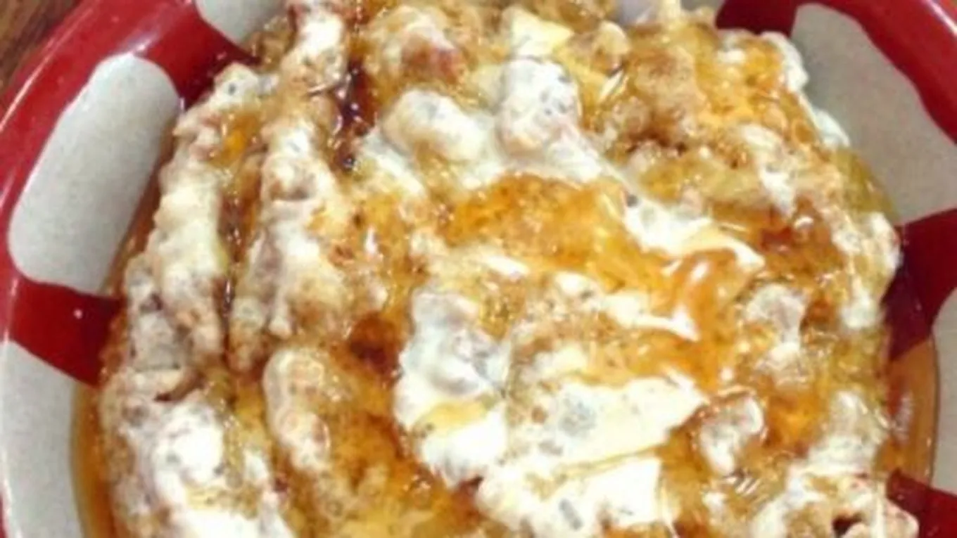 - إضافة الحليب إلى الخليط وتحريكه قليلاً ثمّ سكب المعصوب بوعاء تقديم مناسب وتزيين المعصوب القشطة، والعسل.