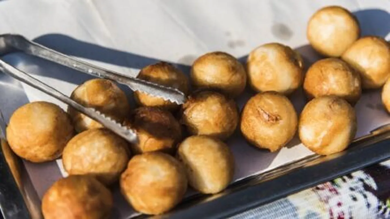 - جمع قليل من العجينة بين الأصابع، لتتكون كرة صغيرة وتخرج من بين السبابة والإبهام، وضع الملعقة الصغيرة تحت كرة العجينة لتتجمع في الملعقة بسهولة، ووضع الملعقة فوق الزيت وباستعمال الإبهام الأيمن يتم دفع كرة العجينة لتسقط في الزيت الساخن، تكرر هذه الخطوة حتى تمتلئ المقلاة.
