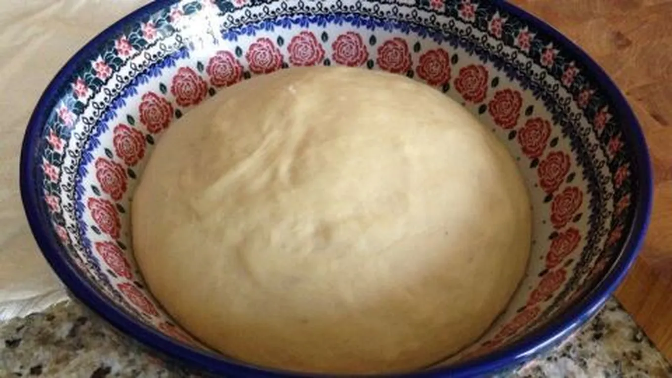 - وضع كلٍ من: كوبان من الطحين، الملح، السكر، الخميرة والماء في وعاء كبير، ثمّ عجن المكوّنات إلى أم تصبح العجينة متماسكة، ثمّ تركها لمدّة عشر دقائق إلى أن تتخمر.