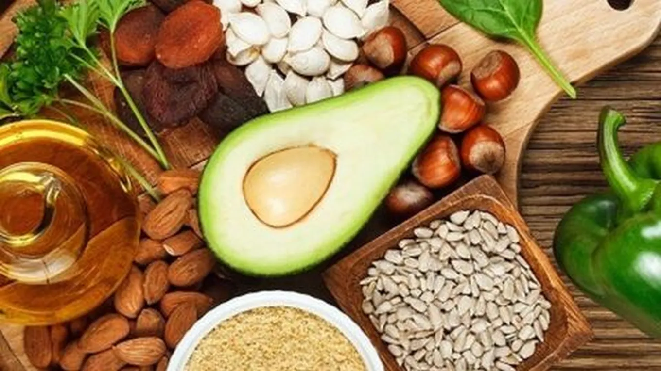 فيتامين E هو واحد من المركبات الثمانية التي تستطيع الذوبان في الدهون، كما يُعدّ من المغذّيات الرئيسية التي لها دور هام في الكثير من وظائف الجسم؛ فهو من أقوى مضادات الأكسدة التي تحارب نمو وانتشار الجذور الحرة داخل الجسم، كما يساعد ويعزز أداء الجهاز المناعي في الجسم، ومن الممكن حصول الجسم على حاجته من فيتامين E عن طريق النظام الغذائي؛ فهو يتوفر في الحبوب الكاملة بالإضافة إلى المكسرات والبذور وزيت الزيتون، كما يتواجد في زيت جوز الهند والخضروات الورقية مثل السبانخ، والفول، وفول الصويا، ومعظم أنواع اللحوم، والحليب، والأفوكادو، والكيوي، وفي البيض، والكبدة، والأسماك الزيتية.