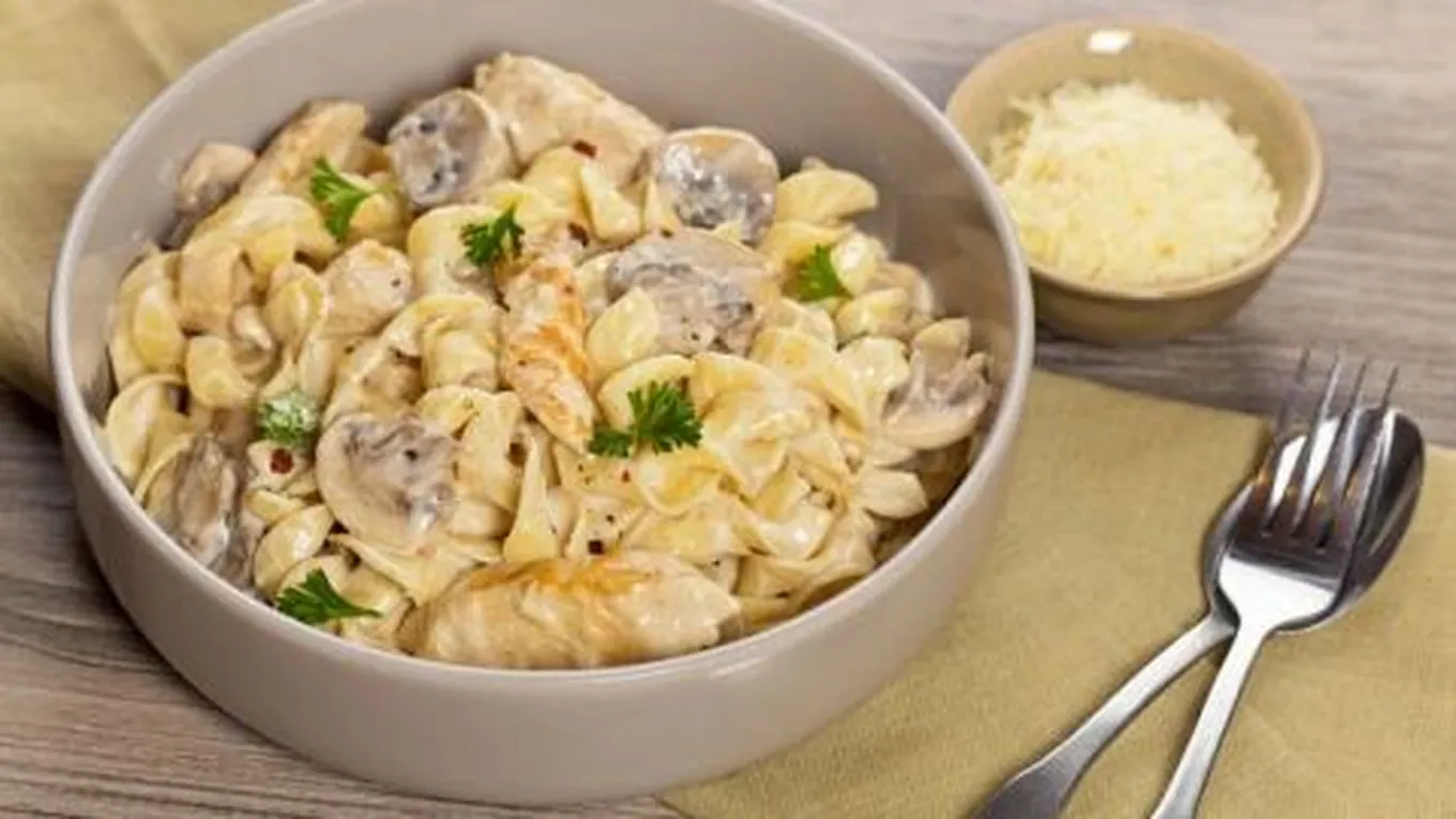 - ترك المزيج لمدة دقيقتين حتى يغلي، ثمّ إضافة المعكرونة المسلوقة.