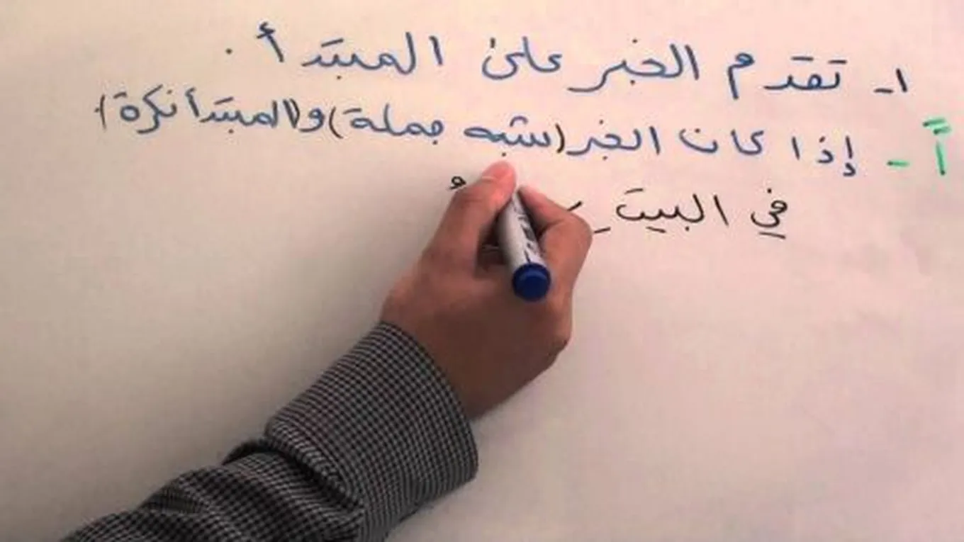 - إذا كان المبتدأ معرفة، وكان الخبر شبه جملة؛ مثل: الأطفال في الساحة.