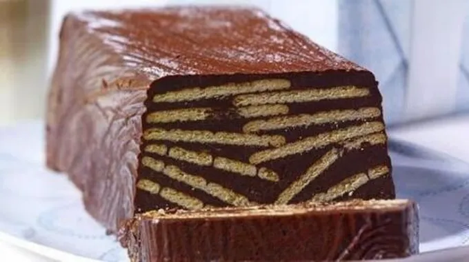 - ضع خليط البسكويت بالكريمة، في قالب مبطّن بالنايلون، ثمّ أدخله المجمّد ليتماسك.