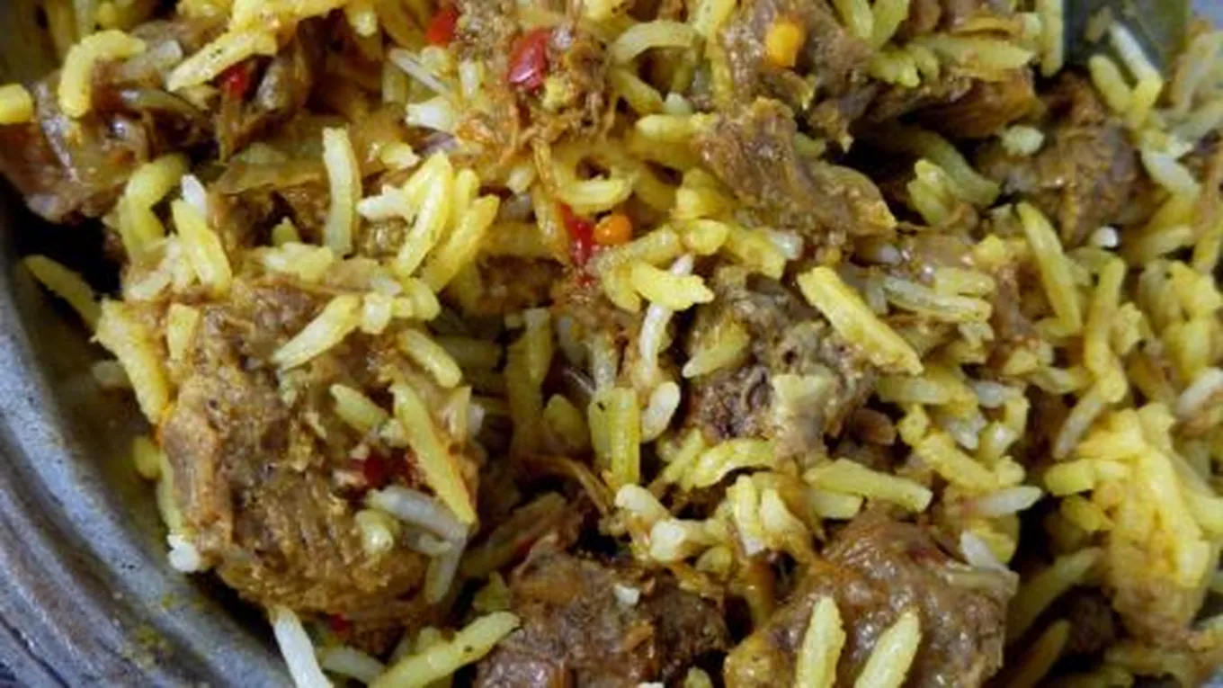 - تصفية قطع اللحم وإضافة الأرز إلى مقدار ستة أكواب من المرق، ثمَّ تركه يغلى مدَّة عشر دقائق حتى ينضج تقريباً، ثم تصفيته.