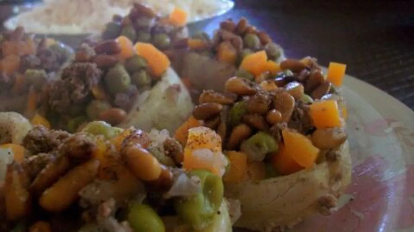 - تزيّن صينيّة الأرضي الشوكي بالمكسّرات المقليّة، وتقدم ساخنة بجانب طبق الأرز.
