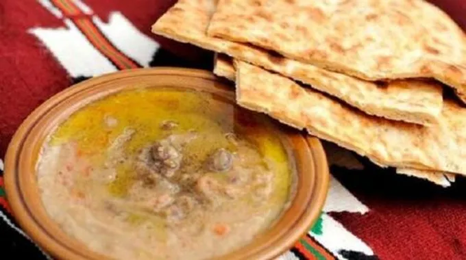 - ننثر كميّةً من الدقيق فوق سطح صلب، ثمّ نفرد العجينة فوقه بواسطة النشّابة.