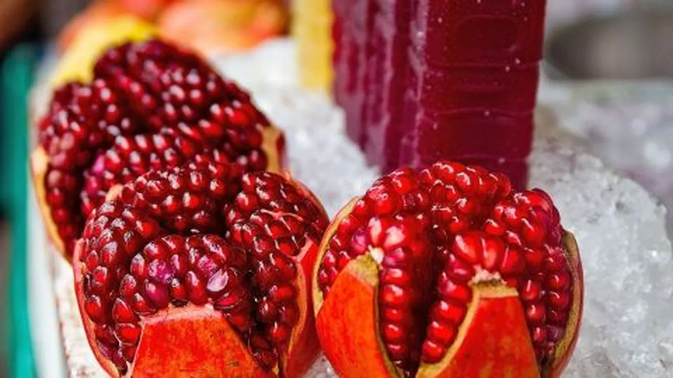 - الرّمان: يحتوي الرّمان على الكالسيوم، وفيتامين ك، وحمض الفوليك، والحديد، والبروتين، والألياف، وهو مصدر جيّد للطّاقة، كما يحتوي على نسبةٍ عاليةٍ من الحديد، حيثُ يساعد فيتامين ك على الحفاظ على صحّة العظام، وتشير الأبحاث إلى أنّ شرب عصير الرمان قد يساعد في تقليل خطر إصابة المشيمة بالضّرر.