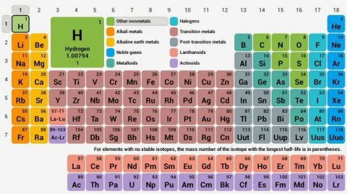 يحتوي الجدول الدوري على أكثر من 100 عنصر، ولا يزال قيد الزيادة في كل مرة يتم اكتشاف عناصر كيميائيّة جديدة، وفي ذات السياق فإن هذا الجدول مقسم إلى عناصر موجودة في الطبيعة ومجموعات أخرى لا توجد إلا في المختبرات الكيميائيّة، ويقسم كل عمود من الجدول الدوري ويسمى بالمجموعات، أما أفقياً فيسمى بالدورة.