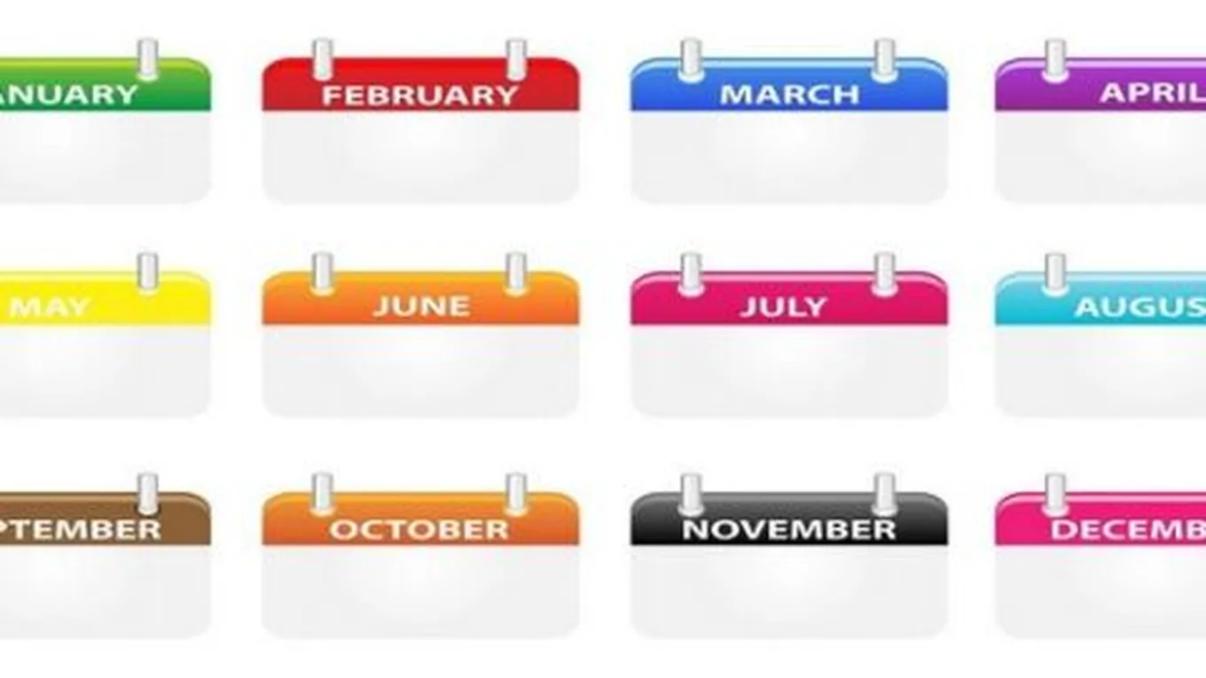 عدد أيام الأشهر الأشهر أشهر أيامها واحد وثلاثون شهر كانون الأول/يناير، شهر آذار/ مارس، وشهر أيار/مايو، وشهر تموز/ يوليو، وشهر آب/ أغسطس، وشهر تشرين الأول/أكتوبر، وشهر كانون الأول/ ديسمبر. أشهر أيامها ثلاثون شهر نيسان/أبريل، وشهر حزيران/يونيو، وشهر أيلول/سبتمبر، وشهر تشرين الثاني/نوفمبر. أشهر أيامها أقل من ثلاثين شهر شباط/فبراير.