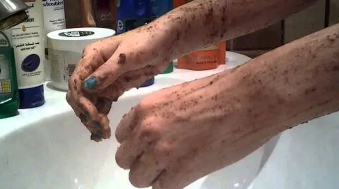 - بعد أن تبرد يُدهن الجسم كاملاً باستخدام الخلطة وتترك لتجف ثم يُفرك الجسم مع الضغط البسيط للتخلص من آثار الخلطة.