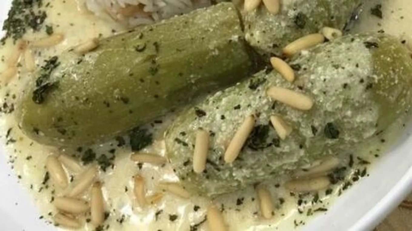 - احشي حبات الكوسا بمزيج اللحم والصنوبر، ثمّ حمريها في الزيت حتى يصبح لونها وردياً.