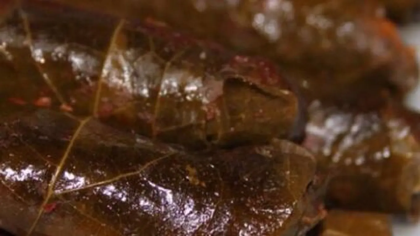 - لف ورق العنب، وتركه جانباً.